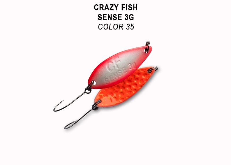 Crazy Fish Sense — небольшая колеблющаяся блесна весом 3 грамма с относительно широки телом и широкой, размашистой, низкоамплитудной игрой. Это позволяет делать медленные проводки и хорошо собирать рыбу с более дальних дистанций. На падении блесна привлекательно «осыпается», поэтому равномерные проводки очень полезно чередовать с паузами, которые могут быть либо просто сбоем приманки и коротеньким падением, либо давать приманке сыпаться до самого дна.