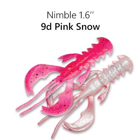 Crazy Fish Nimble 1.6” — четырехсантиметровый рак с активными клешнями, которые после попадания в водоём сразу начинают попеременно или синхронно колебаться даже во время одной проводки в зависимости от потоков воды. Этот эффект оживляет приманку, провоцирую хищника на атаку. Хаос в движениях убегающей добычи, натуралистичность, беспрерывная размашистая работа без сбоев — в этом преимущество «Нимбла» перед виброхвостами и слагами в аналогичном размере.