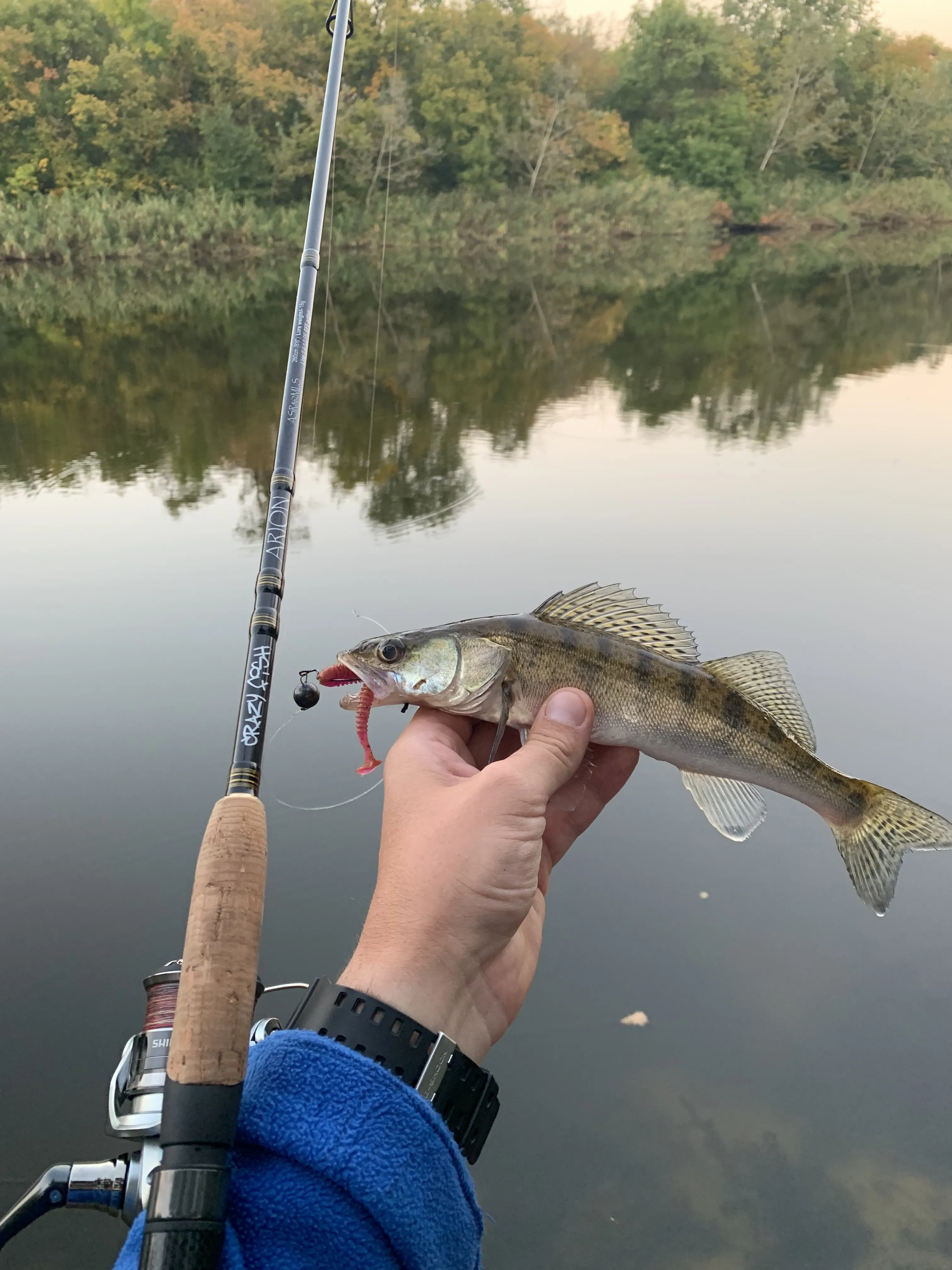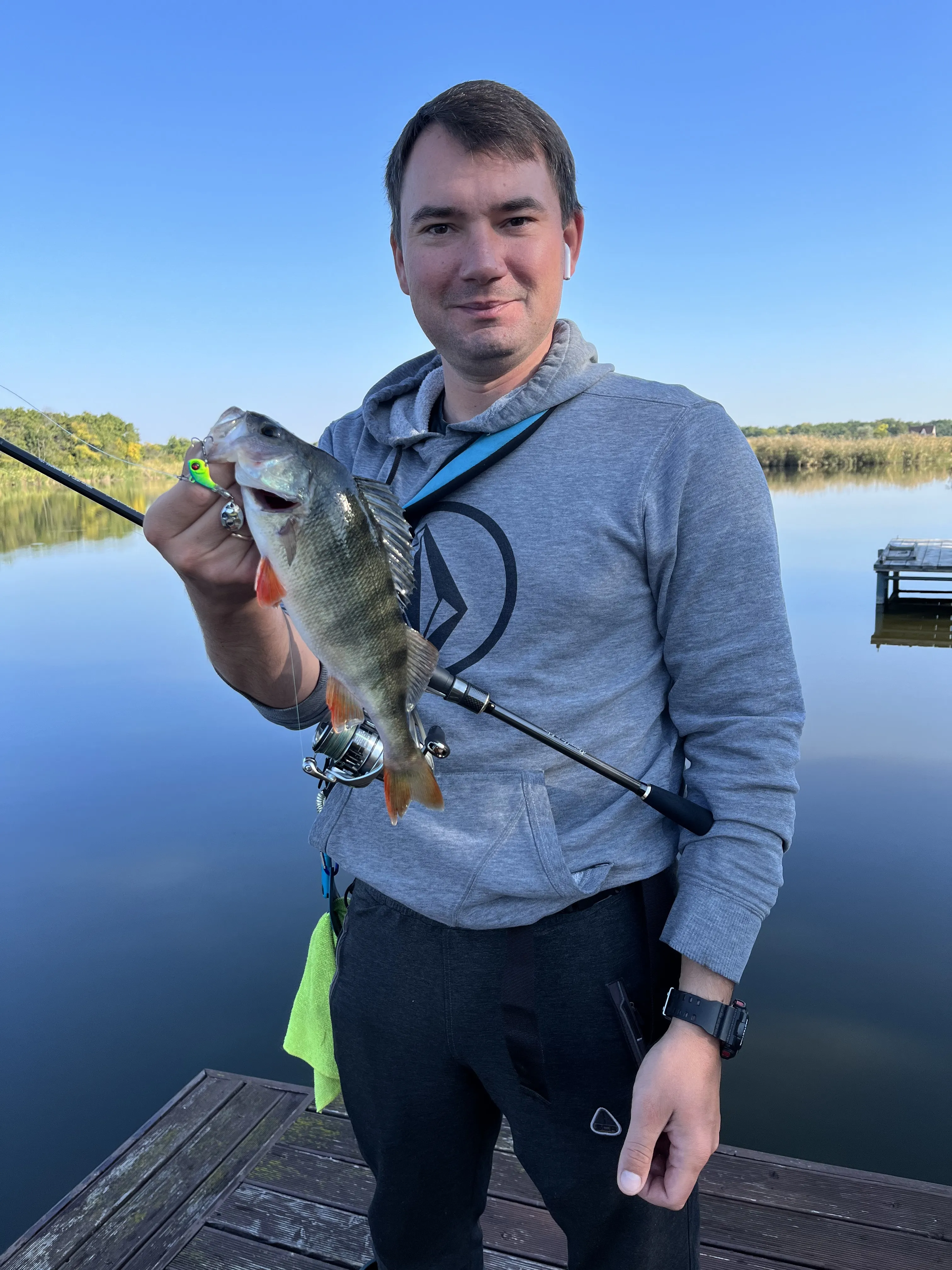 По друге - перед покупкою я хвилювався, чи не буде вона зливати рибу через свій стрій. Так ось, невеликі окуні дійсно при зачісці за край губи періодично сходять. Але якщо даєш час окуню заїсти приманку, а чутливість вершинки і самого бланку чудово дозволяє це відслідкувати, то далі на виважуванні все добре і шансів зійти у окуня не має. З більш крупною рибою взагалі без питань. Палка шикарно підсікає і доставляє на берег.