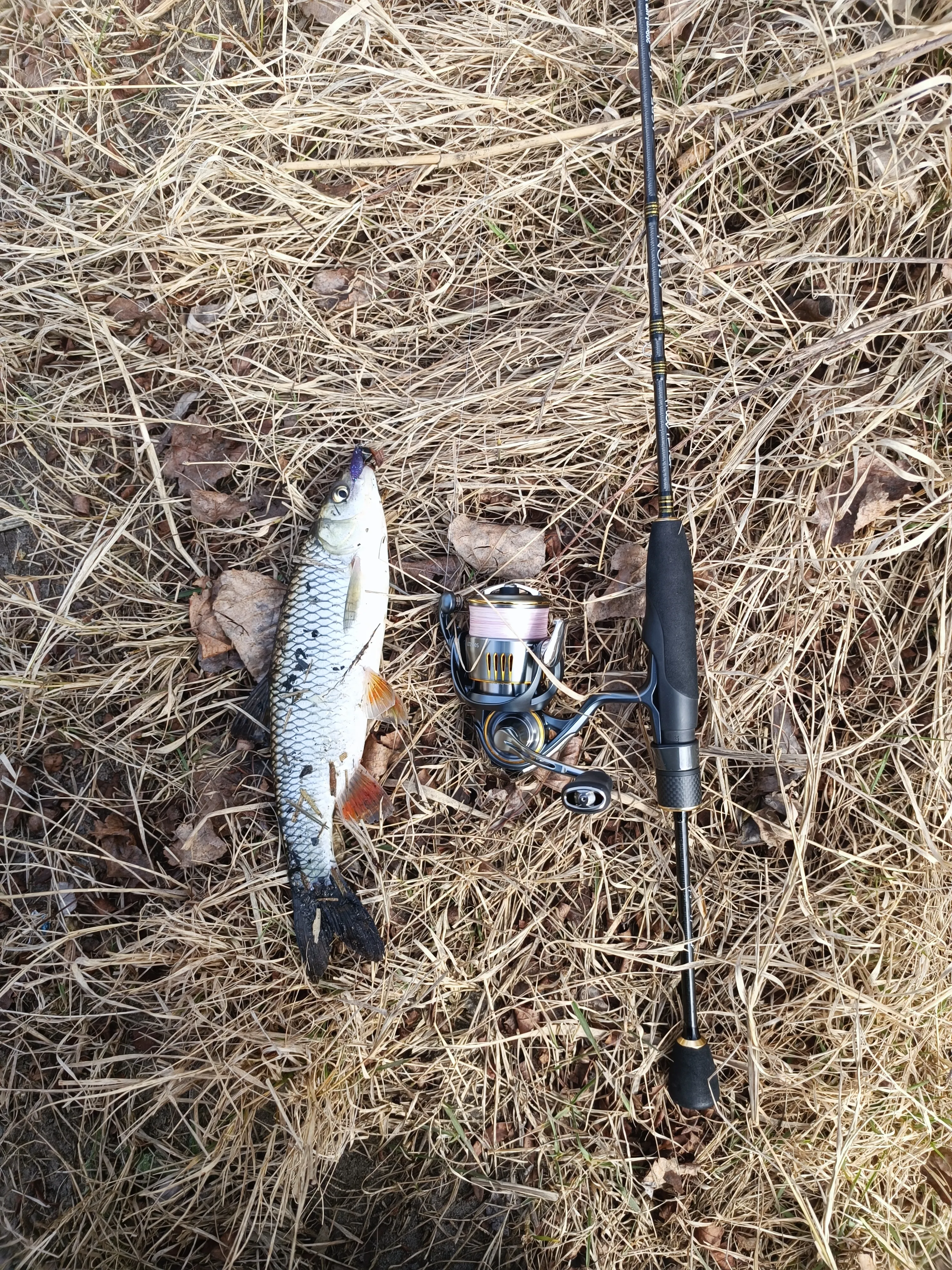 Первая рыбалка с 702 Арионом прошла на славу! Кидает очень круто, за спиной видно ширину речки, палочка 209 см с джиг ригом 4-5 грамм кидает почти на ту сторону в боковой ветер
