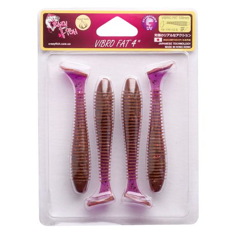 Crazy Fish Vibro Fat 4" — виброхвост для ловли щуки, судака, окуня и сома. Благодаря вырезам на теле он идеально подходит для оснащения офсетными крючками и ловли в трудных местах. Также на теле приманки есть отверстия для оснащения вольфрамовыми или свинцовыми гвоздиками, что поможет раскрыть потенциал приманки в большей степени! Силиконовая приманка имеет довольно большой и тяжёлый хвост, благодаря чему активно играет на любой скорости проводки и соблазняет рыбу с большого расстояния.
