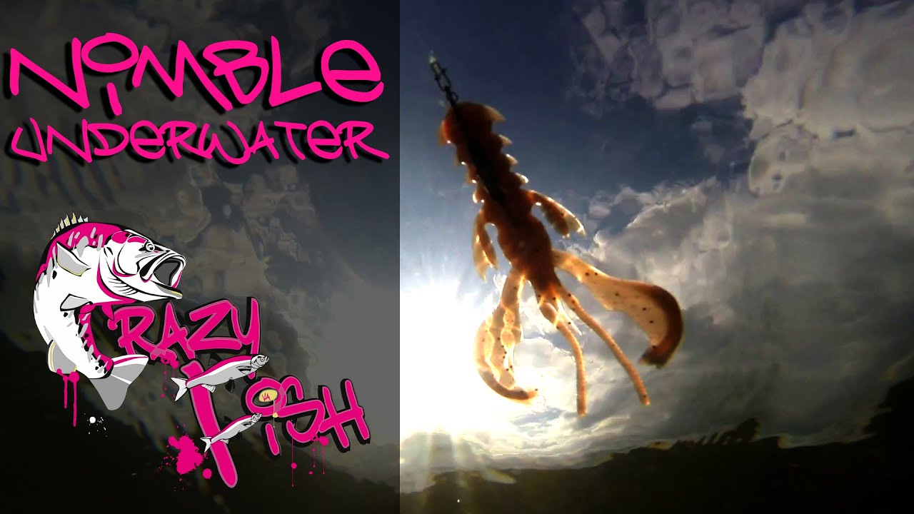 Crazy Fish Nimble 1.2” — рак довжиною 3 сантиметри з активними клешнями, які після потрапляння у водойму відразу починають поперемінно або синхронно коливатися навіть під час однієї проводки залежно від потоків води. Цей ефект пожвавлює приманку, провокуючи хижака на атаку. Хаос у рухах, натуралістичність, безперервна розмашиста робота без збоїв — у цьому перевага «Німбла» перед віброхвістами та слагами в аналогічному розмірі.